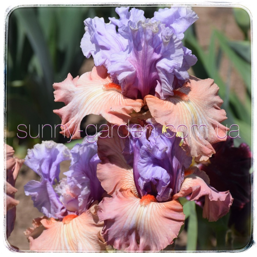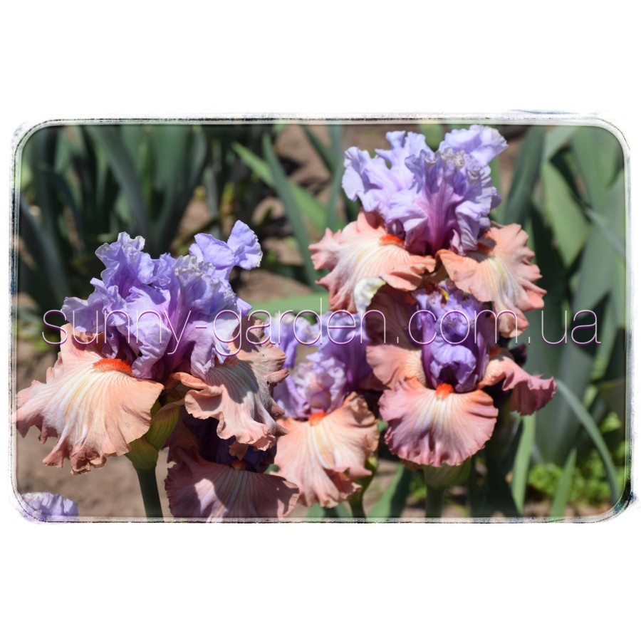 Опис | Сильный шаг в направлении голубо-оранжевого биколора. Стандарты голубые с более глубокими прожилками и в центре и осветленные к краю. Лососево-оранжево-розовые фолы с более светлой областью вокруг мандариновых бородок. Показательные цветоносы. Очень эффектный и красивый! Уникальный! NEW!!! |