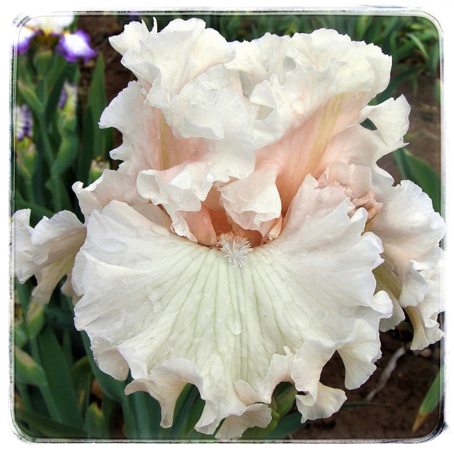 Опис | Красива витончена квітка з чудовою формою і гофрованими пелюстками. Яскраво-білі стандарти мають рожевий відтінок і зелені прожилки по середині. Білі фоли мають зелені прожилки по середині, що надає їм витонченого зеленого відтінку. Матові мандаринові бороди мають білі кінчики. Солодкий аромат, чудові стебла з 7-9 бутонами. |