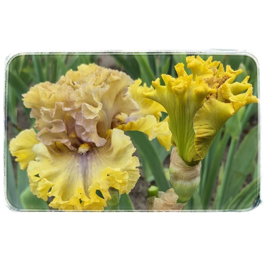 Опис | Стандарти та стайли димчасто-темно-жовті з бежевим відтінком, дуже сильно гофровані; фоли чисто жовті, невелика ділянка бежево-темно-лавандового кольору під борідкою, дуже сильно гофровані; борідки темно-жовті; виражений солодкий аромат. |
