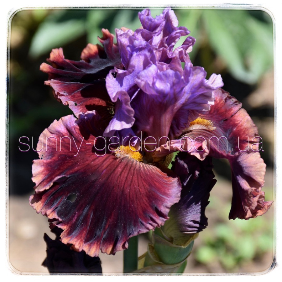 Опис | Восхитительное сочетание цветов. Стандарты - светло лиловые с краем розового цвета. Фолы бордовые имеют четко выраженный край приглушенного золота. Бородки цвета старого золота. Широкие гофрированные цветы с легким ароматом, большим количеством бутонов и выставочными цветоносами. |