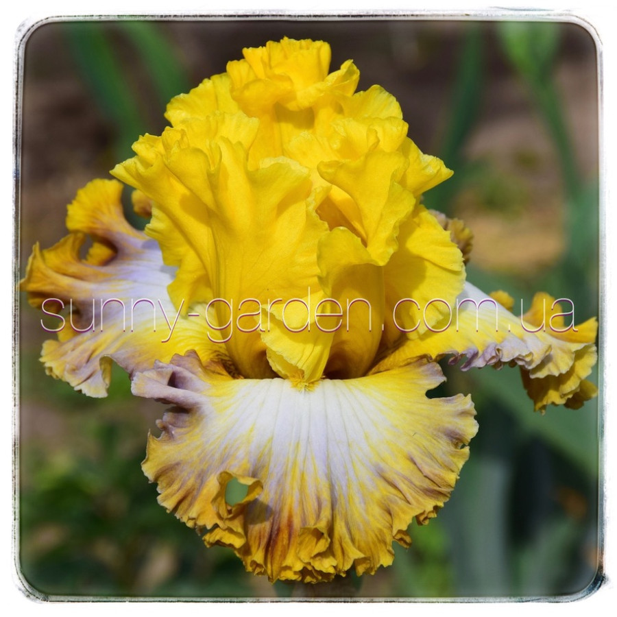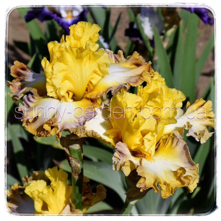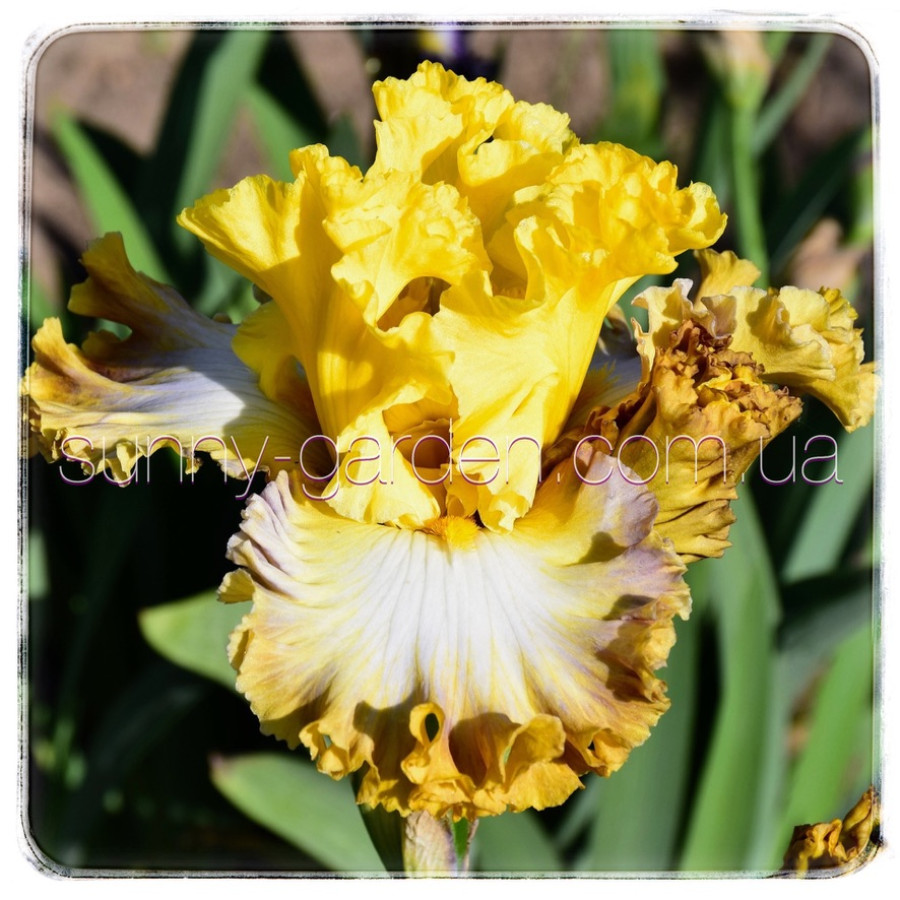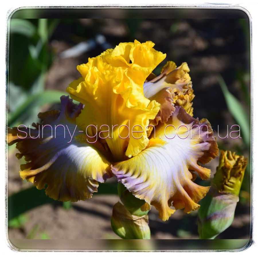 Опис | Стандарти — золотисто-жовті; стилеві стайли— золоті; фоли — сильно гофровані, широкі, білі в центрі, оточені змішаною лавандово-ліловою та карамельною смугою. Під час цвітіння трохи вицвітає. Борідки жовті з оранжевим відтінком у горлі. |