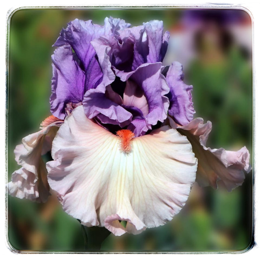 Темно-бузкові стандарти переходять у світлі сріблясто-бузкові краї з акуратними бузково-рожевими стайлами, що визирають.