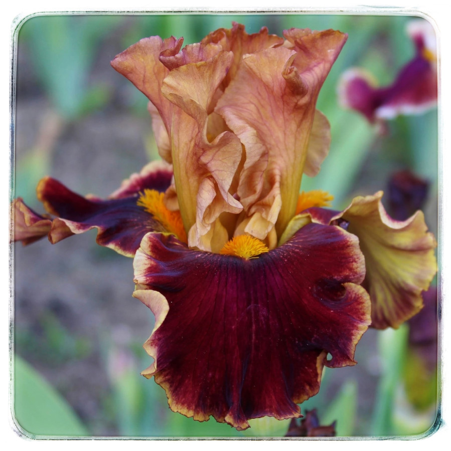 Стандарти та стайли світло жовтогарячі (RHS 19B); фоли світло жовтогарячі з коричневими прожилками та світло-коричневими проміжками між ними; борідки цегляно-червоні; легкий солодкий аромат.