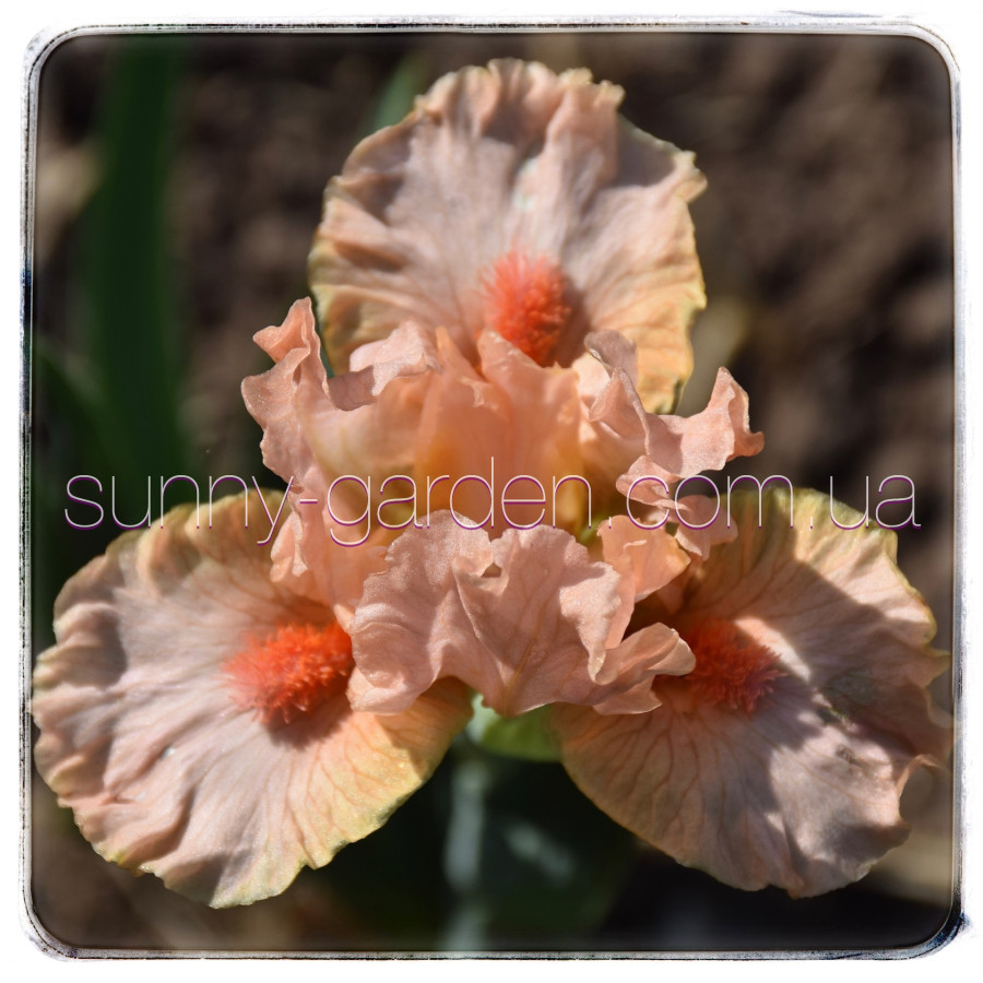 Широкие розовые фолы окантованы золотисто-желтым и украшены креветочно-розовыми бородками.
