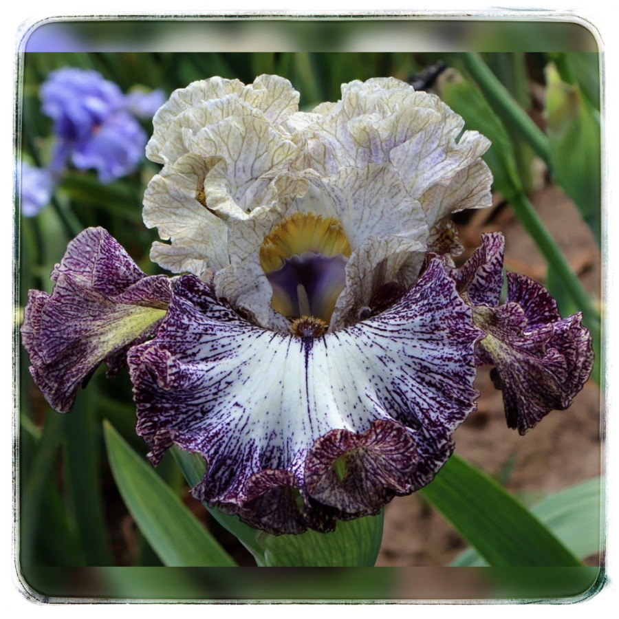 Опис | Це був улюблений саджанець П. Блека з усіх саджанців року BB. Тут така величезна кількість кольорів та візерунків, що одного погляду недостатньо, щоб осягнути все. Це ще один дитя Crocodile Smile, що показує його важливість як батьківської рослини. Тепло-білі стандарти мають широку світло-фіолетову зовнішню смугу плікати та широку світло-хакі-коричневу шліфовану та підкладену смугу плікати. Стайли контрастують темно-золотистими. Білі фоли мають широкі темно-фіолетові до темно-сливових смуги плікати з шліфованою смугою. Насичені коричневі борідки є ідеальним акцентом. Три гілки дають 8-9 бруньок. |
