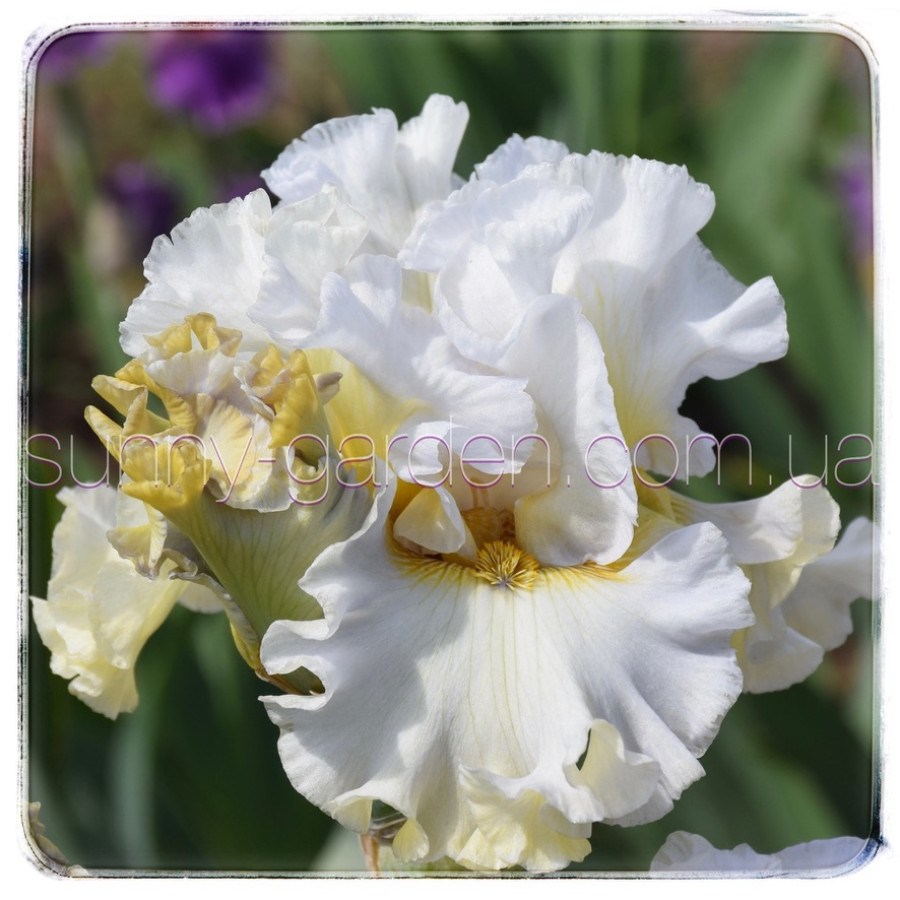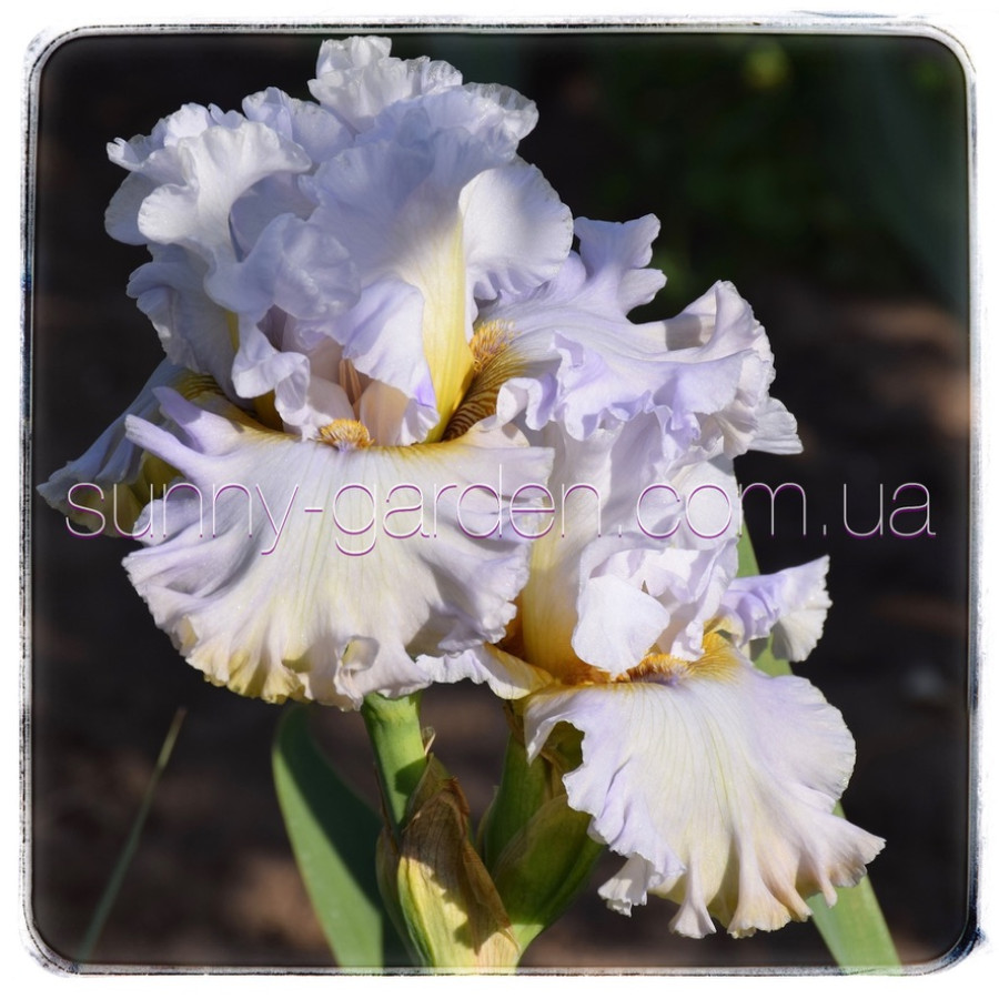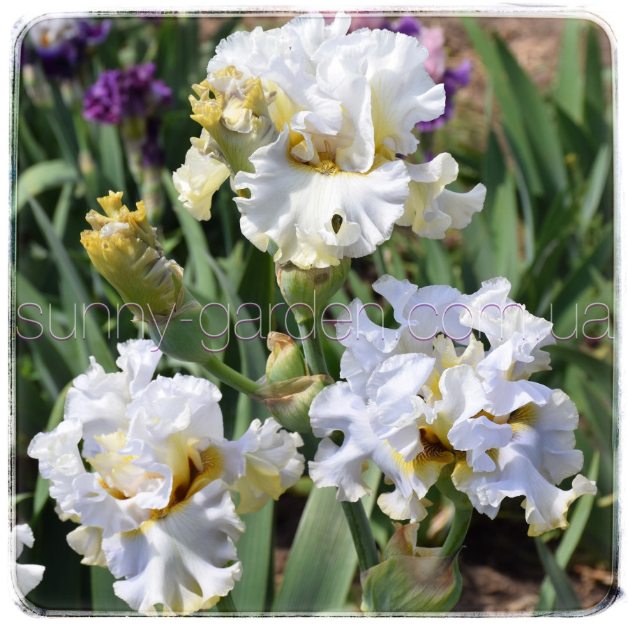 Опис | Стандарти — білі з кремово-жовтим центром; фоли — сильно гофровані білі з ніжними жовтими прожилками в зоні плечей. Борідки білі з жовтими кінчиками. Високий красень з великою кількістю бутонів. |