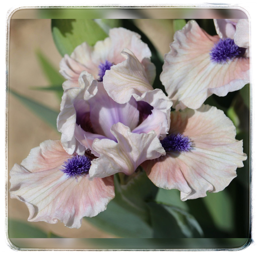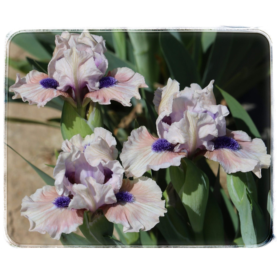 Опис | Світло-рожеві стандарти з глибшим рожевим відтінком та зеленуватим відблиском уздовж центральної жилки. Фоли світло-рожеві з насичено-рожевою плямою та великими темно-синіми борідками. Справжня красуня! Сіянець TO41A: Little Miss Sunshine × Secret Password |