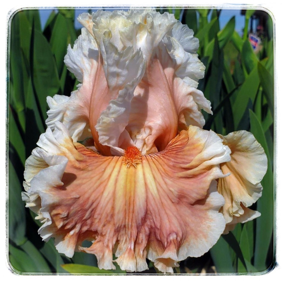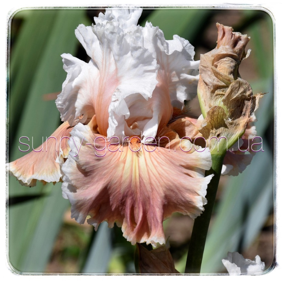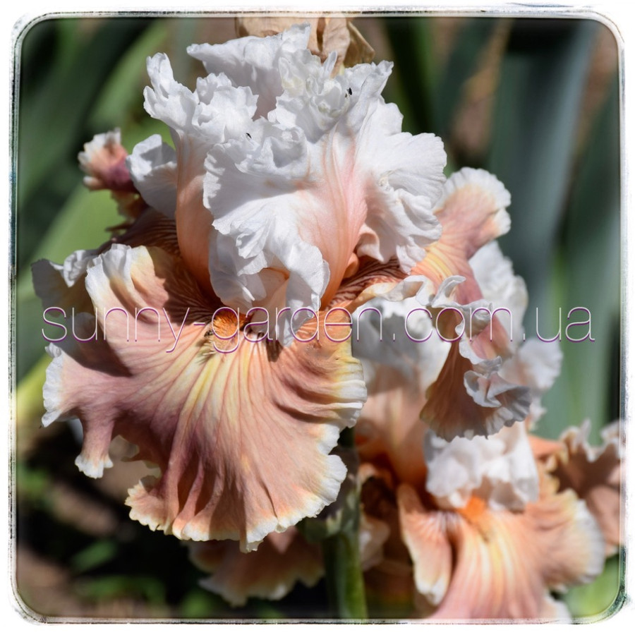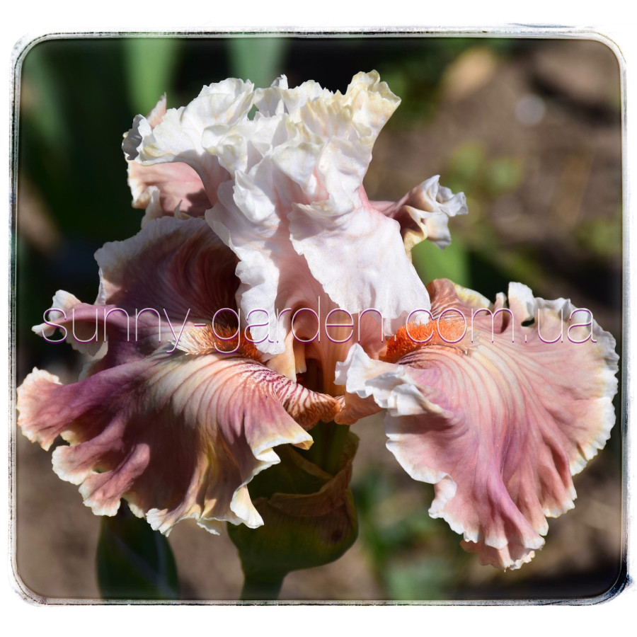 Опис | Потрясающе красивый! Белые стандарты с абрикосовым оттенком по краям и насыщенно-розовым румянцем по середине ребер. Розово-окрашенные фолы имеют более темные прожилки со светлой желто-оранжевой зоной под бородками и 1-дюймовой белой полосой по краям. Огненно-красные бородки, 7 бутонов на красивых цветоножках и сладкий аромат. Оборчатый и крупный цветок. AD-5002-A: Magical X Shell Beach |