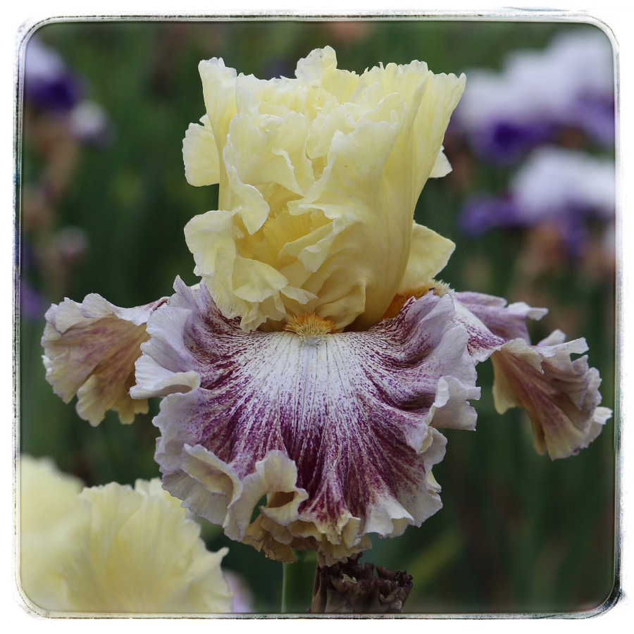 Опис | Вау, вау, вау, це ж ефектний та самобутній ірис!! Дійсно складне поєднання кольорів та візерунків. А на додачу — масивні, сильно гофровані квіти. Воістину приголомшлива краса від двох виняткових батьків. Arrivederci X Dressed To The Nines |