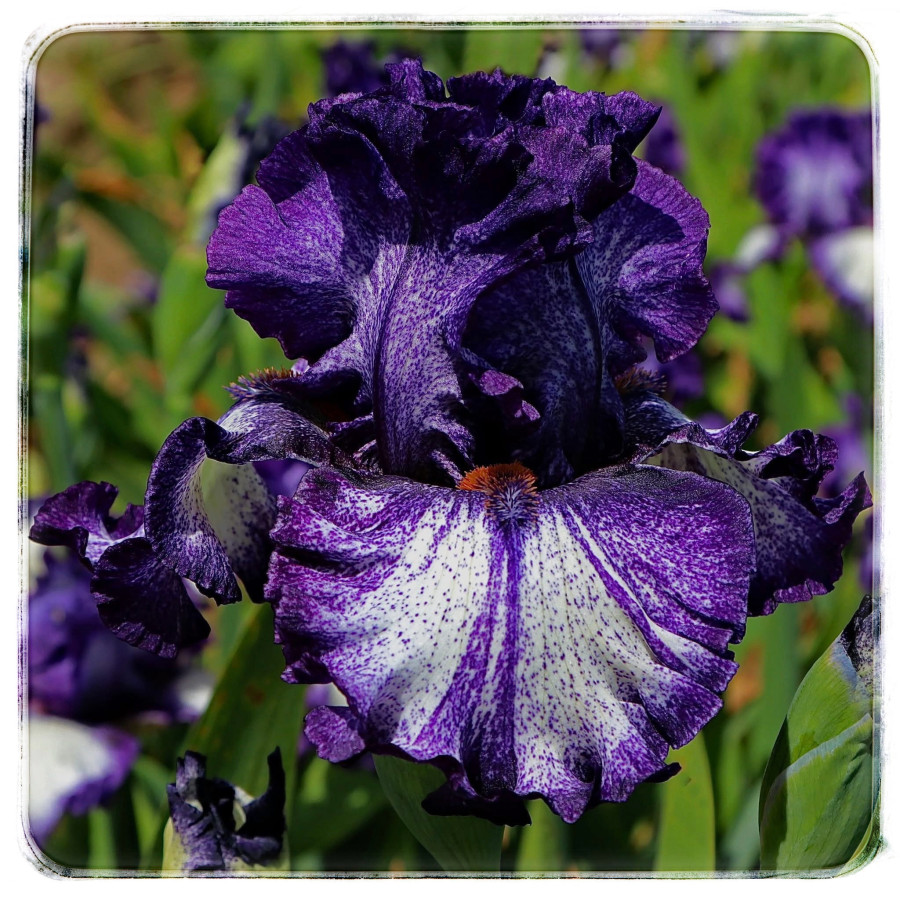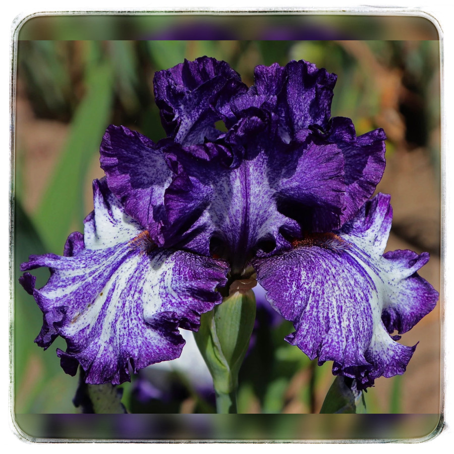 Опис | Це один із небагатьох плікатних сортів із «зламаним» забарвленням, з чудовими габаритами рослин та чудово сформованими квітами. Білі стандарти мають широку темно-фіолетову плікатну смугу та щільно розташовані цятки по центру. Широкі та гофровані фоли білі з темно-фіолетовими ламаними сегментами, смугами, цятками та піщаним нальотом. Стебла для виставки мають три гілки та 7-8 бутонів. |