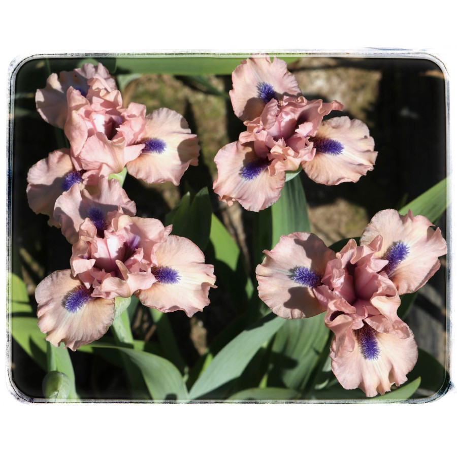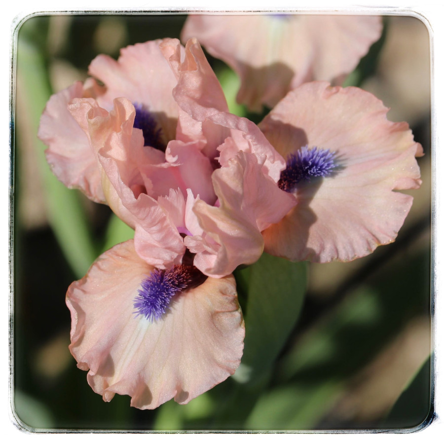 Гарні прозорі середньо-рожеві пелюстки підкреслюються великою ефектною темно-синьою борідкою. Приваблює погляд!