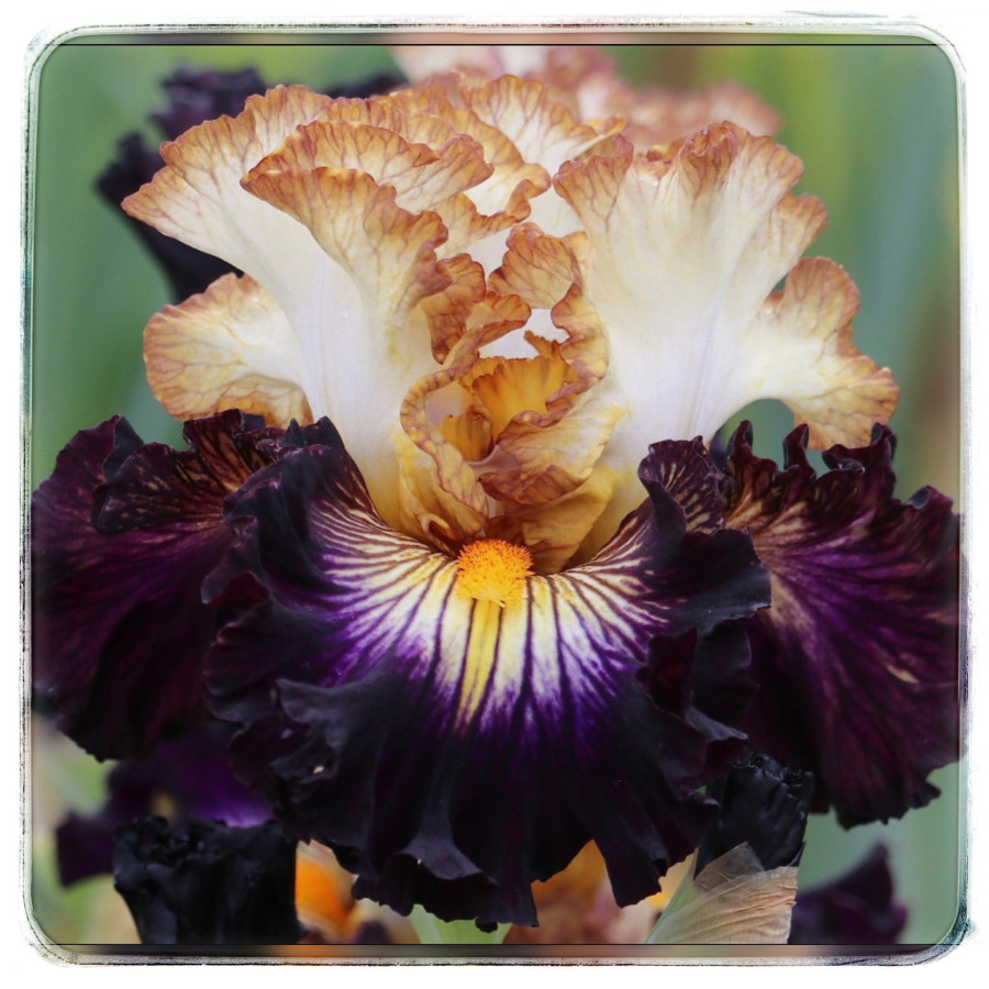 Опис | Кремові стандарти мають широкі та чіткі краї з червоними прожилками з жовтими відтінками. Фоли мають дуже насичений синьо-фіолетовий колір з центральним білим сонячним промінням. Фіолетові лінії проходять крізь сонячний промінь від та навколо борідки. Нарешті, є широка глибока лимонна лінія, яка тягнеться під борідкою до темно-фіолетової смуги. Дуже велика, повна кругла та скуйовджена форма додає драматичності. Нижчий за зростом, але з міцними стеблами. |