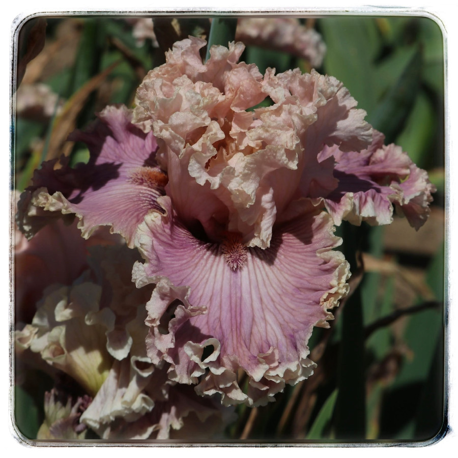 Опис | Світло-лососево-рожеві стандарти повторюються в смузі навколо насичених рожевих фолов. Фоли надзвичайно широкі та перекриваються. Що дійсно відрізняє « Topography» від інших, так це її інтенсивно гофровані та злегка мереживні квіти. Гарні декоративні стебла є нормою. |