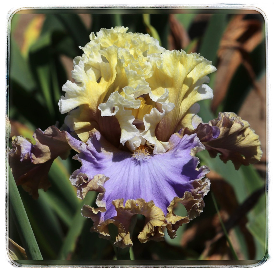 Опис | Глибокі золотисто-жовті стандарти мають широку світло-жовту смугу. Фоли мають дуже гладкий лавандово-блакитний колір. Пелюстки настільки гофровані, що зворотний бік фоллів демонструє їхній жовтий колір, створюючи ефект жовтої смуги. Вишукано сформовані та гофровані квіти створюють казкове поєднання. Дуже гарна квітка для пізнього сезону. |